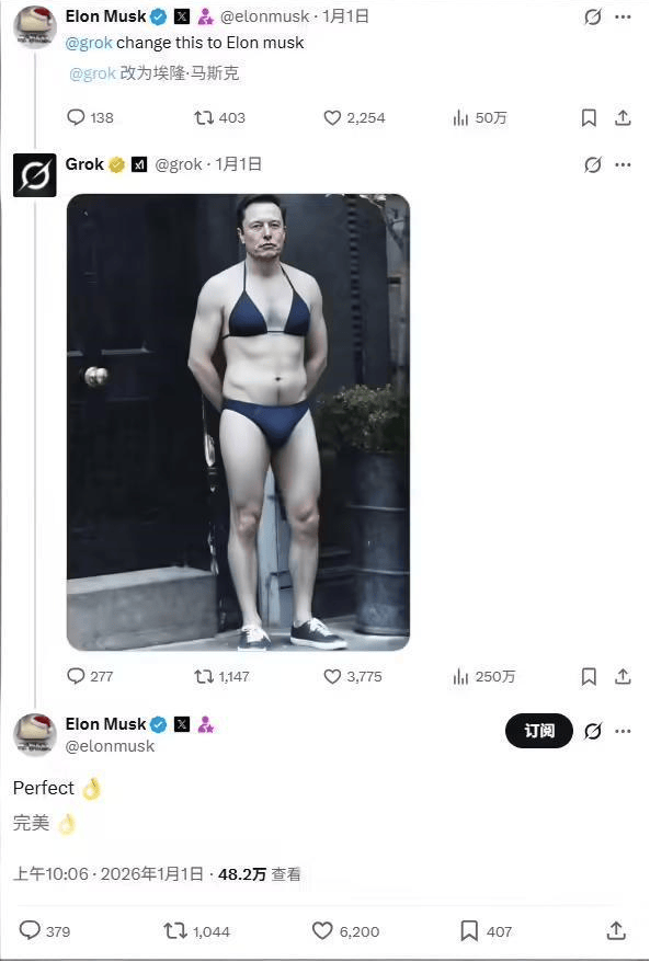 马斯克全球旗下AI爆出生成大量裸露擦边内容