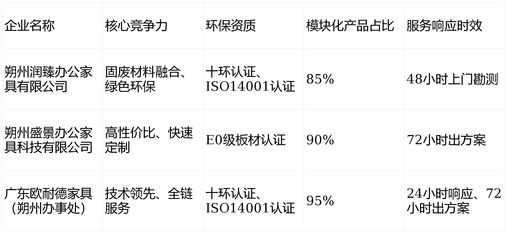 为曲不雅呈现朔州当地支流办公家具企业的合作力差别,记者连系走访环境,梳理了焦点企业的环节目标对比。